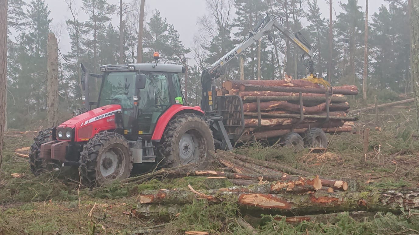 På gården bedriver vi en del skogsbruk. Har främst blandskog men majoriteten är barr. Hjälper även till med trädfällning och bortforsling vid behov. Vi kör även en del med Dalaklippen på vår grävare och gör klipper rent runt åkerkanter men även öppnar upp skogsvägar.